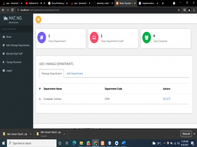 Nowadays, the computer system is been integrated into several aspect of the society hence, institutions are dropping the existing method of their managerial and administrative task, which entails the use of pen, paper and calculator or excel, which is time consuming and tasking. Institutions of learning in most part of the world in a bid to make managerial and administrative task easier, are now adopting the use of special software application built for the purpose of managerial and administrative task. The essence of adopting the use of automated system over the existing method is that its percentage of errors are zero to none or minimal, also due to the fact that records can be stored in a central location simultaneously while providing access to the records when needed and also eliminating the difficulty in retrieving lost data as often experienced in the existing method. Base on the salient reasons, building a matric number generating system for institutions of learning for generating and managing students’ records should be paramount and hence, the resolve in building a web based matric number generating system (Olayinka, 2014)