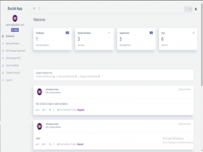 The research Social Media web base application is to make easy for school administration to access student opinion and also to determine if it is a negative or positive comment/opinion. The methods that will be used in this research work will be observation method and MySQL, PHP scripting language, Apache, are used as the tools for developing the software.