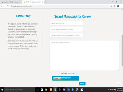 This project will be centered on the basic processes in the Journal Publication of the Nigerian Journal of Technology and Human Development which is published by Nigerian Army Institute of Technology and Environmental Studies (NAITES) Makurdi.