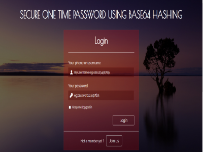 This research work covers the design and implementation of a secure one-time password using base64 hashing algorithm to encrypt OTPs and forward to users mobile numbers.