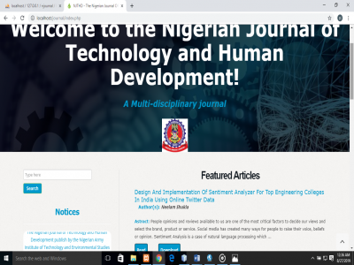 It is quite evident that the publication of the Nigerian Journal of Technology and Human Development has posed a lot of challenges especially the time constraint taken to carry out the publication processes. The question therefore is, should the institutions continue to run the journal system at the current level or should the process be automated? Although this problem is not restricted to only the Nigerian Army Institute of technology and environmental studies (NAITES), in recent time, the quest for automated system has been in view in various sectors of endeavor. Some of the Problems associated with the current journal system includes; human errors such as typography and redundancy, publication timing, Loss of manuscripts before or after the assessment, Contributors that are not near Makurdi experience difficulties in submitting their articles for publications, because articles are only sourced out for publications when conferences are been held by the Nigerian Army Institute Of Technology and Environmental Studies (NAITES) Makurdi.