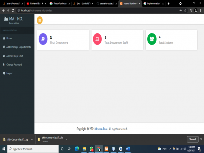 Presently, the method of generating matriculation number is time consuming as students after completing their basic school registration requirements they have to take their payment receipts to their respective departments for it to be verified and a matriculation is then been generated for the students. Each of the procedure involved in the generation of the matriculation number will be analyzed and automated to make the matriculation number generating system more efficient.