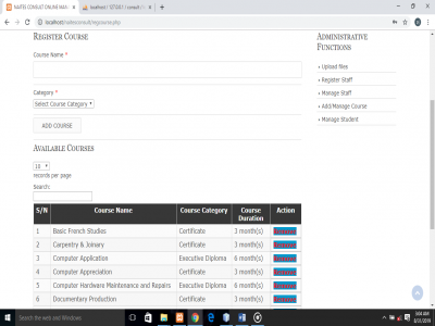 i. The designed software will aid in keeping the directorate certificate course registration records.