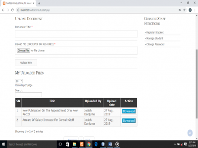 iii. The designed software will be useful in terms of data security, as records can only be accessed by the directorate staff via their login details.