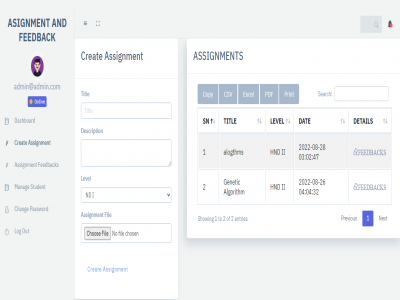 This research work covers the design and implementation of a web-based assignment and feedback system for Computer Science Department of the Nigerian Army College of Environment Science and Technology (NACEST).