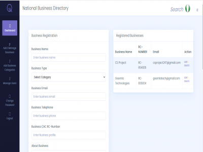 Over the years, various businesses directory has been implemented and deployed to improve business identification or location by customers or other businesses. However, there are still improvements that could be done. The research aims to address the issue of business listing in Nigeria as a country and to allow companies have a wider range of business view and afford citizens the privilege of searching out business from the developed system to authenticate their registration details.